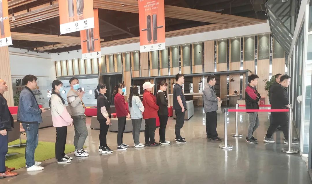 员工有序排队